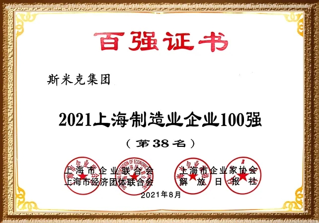 新利luck18官网集团荣登“2021上海制造业企业100强”榜单